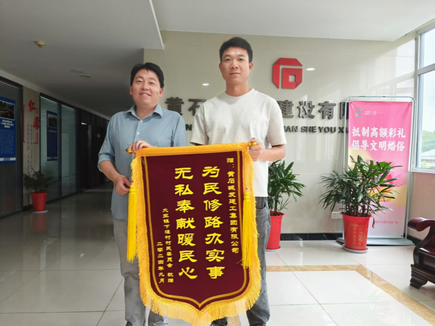 9月12日上午,黃石市開(kāi)發(fā)區(qū)·鐵山區(qū)大王鎮(zhèn)下堰村委代表將一面寫有“為民修路辦實(shí)事 無(wú)私奉獻(xiàn)暖民心”的錦旗送到城發(fā)建工集團(tuán),對(duì)城發(fā)建工集團(tuán)在精準(zhǔn)服務(wù)居民所需、積極解決居民急難愁盼的工作表示衷心感謝。