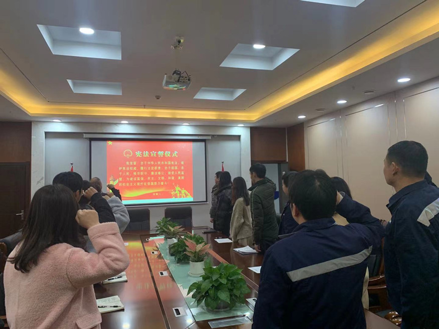 公司組織開展一系列憲法宣傳活動(dòng),掀起了一陣學(xué)習(xí)憲法的熱潮。一是組織全體干部職工關(guān)注“黃石司法”微信公眾號(hào),積極動(dòng)員大家開展憲法法律知識(shí)網(wǎng)絡(luò)有獎(jiǎng)競答活動(dòng),公司共60余名干部職工參與測試,測試效果顯著,平均分達(dá)80分。二是組織青年干部職工觀看《身邊的憲法》公益宣傳片,深刻把握憲法核心要義,引導(dǎo)干部職工不斷深化對(duì)憲法的政治認(rèn)同和情感認(rèn)同。三是組織干部職工進(jìn)行憲法宣誓,錚錚誓言詮釋對(duì)敬畏憲法、遵守憲法、維護(hù)憲法的使命感和責(zé)任感。四是通過公司微信公眾號(hào)平臺(tái)發(fā)布憲法文本,深入學(xué)習(xí)貫徹習(xí)近平法治思想,大力弘揚(yáng)憲法精神,堅(jiān)決維護(hù)憲法權(quán)威,切實(shí)推動(dòng)憲法實(shí)施。