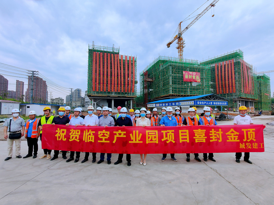 黃石臨空商務(wù)產(chǎn)業(yè)園獨(dú)棟企業(yè)總部項(xiàng)目部分樓棟喜封金頂