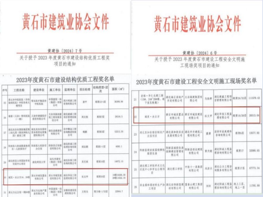 城發(fā)·水云方項(xiàng)目榮獲黃石市建設(shè)工程安全文明施工現(xiàn)場(chǎng)和結(jié)構(gòu)優(yōu)質(zhì)工程獎(jiǎng)