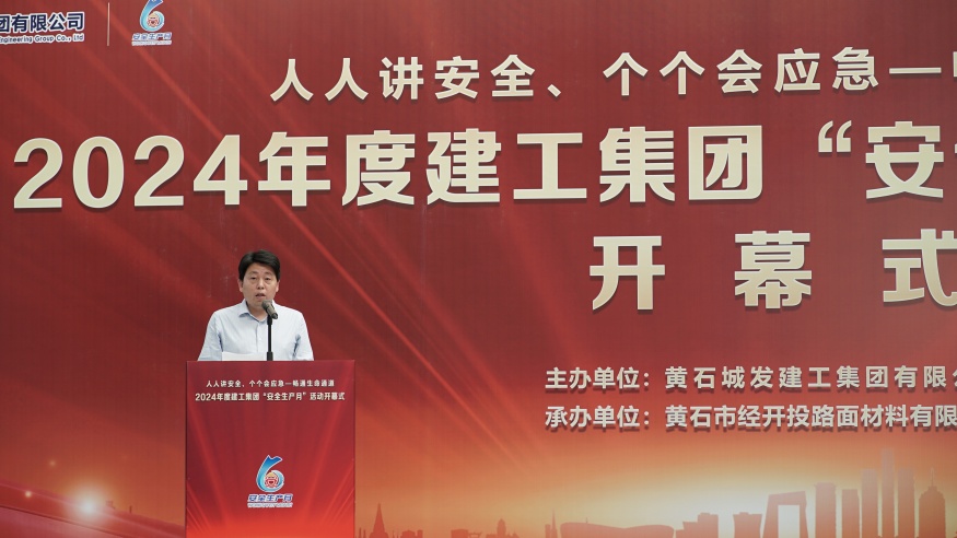 2024年6月是全國第23個(gè)“安全生產(chǎn)月”,活動(dòng)的主題是“人人講安全個(gè)個(gè)會(huì)應(yīng)急--暢通生命通道”。為深入貫徹落實(shí)習(xí)近平總書記關(guān)于安全生產(chǎn)的重要論述精神,牢固樹立安全發(fā)展理念,6月3日上午,城發(fā)建工集團(tuán)2024年“安全生產(chǎn)月”活動(dòng)啟動(dòng)儀式在黃石市經(jīng)開投路面材料公司辦公區(qū)正式啟動(dòng)。此次活動(dòng)由城發(fā)建工集團(tuán)主辦,黃石市經(jīng)開投路面材料公司承辦,街道平安建設(shè)辦應(yīng)急辦副主任張曉輝、李銳,應(yīng)急辦片區(qū)監(jiān)管負(fù)責(zé)人呂增、馮軻,城發(fā)集團(tuán)應(yīng)急保障部副部長姜疆,城發(fā)建工集團(tuán)黨總支書記、董事長呂紹成,城發(fā)建工集團(tuán)黨總支副書記總經(jīng)理馮志華出席活動(dòng)。城發(fā)建工集團(tuán)領(lǐng)導(dǎo)班子成員,各二級(jí)單位主要負(fù)責(zé)人及分管安全負(fù)責(zé)人,建工集團(tuán)各職能部室、各在建項(xiàng)目部項(xiàng)目經(jīng)理、各二級(jí)單位職工代表等70余人參加活動(dòng)。本次活動(dòng)由城發(fā)建工集團(tuán)黨總支委員、副總經(jīng)理洪登峰主持。