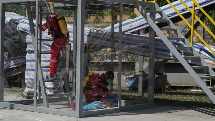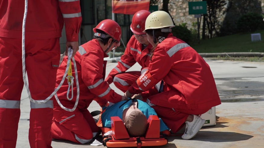 啟動(dòng)儀式后,黃石市經(jīng)開投路面材料公司開展應(yīng)急演練活動(dòng)演練以模擬有限空間作業(yè)環(huán)境下人員缺氧窒息暈倒為背景。事故發(fā)生后,安全保衛(wèi)組、事故救援組、醫(yī)療救護(hù)組、后勤保障組等各應(yīng)急小組迅速趕赴現(xiàn)場,采取有效措施進(jìn)行事故應(yīng)急救援。演練全程用時(shí)僅15分鐘,演練過程緊張有序,程序規(guī)范、場景真實(shí)、反應(yīng)快速、效果良好。應(yīng)急演練活動(dòng)進(jìn)一步提升了建工集團(tuán)安全員處置突發(fā)事件的水平和應(yīng)急處置能力,為完善突發(fā)事件應(yīng)急預(yù)案提供了寶貴的實(shí)踐經(jīng)驗(yàn)。