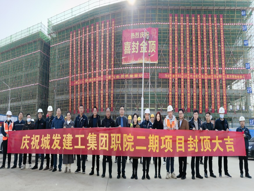 2023年1月9日上午,在湖北工程職業(yè)學院新校區(qū)(二期)生活區(qū)宿舍樓項目現(xiàn)場舉行主體結構封頂儀式。城發(fā)建工集團黨總支書記、董事長潘明亮,城發(fā)建工集團黨總支委員、副總經理洪登峰出席活動,城發(fā)建設公司、城發(fā)渣土公司、城發(fā)商砼公司相關負責同志,施工單位、監(jiān)理單位、咨詢設計單位等參建各方代表參加項目主體結構封頂儀式。